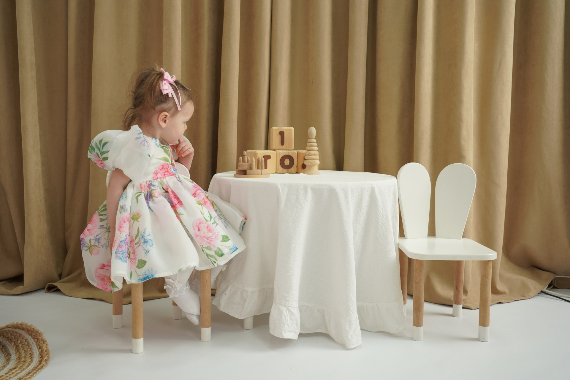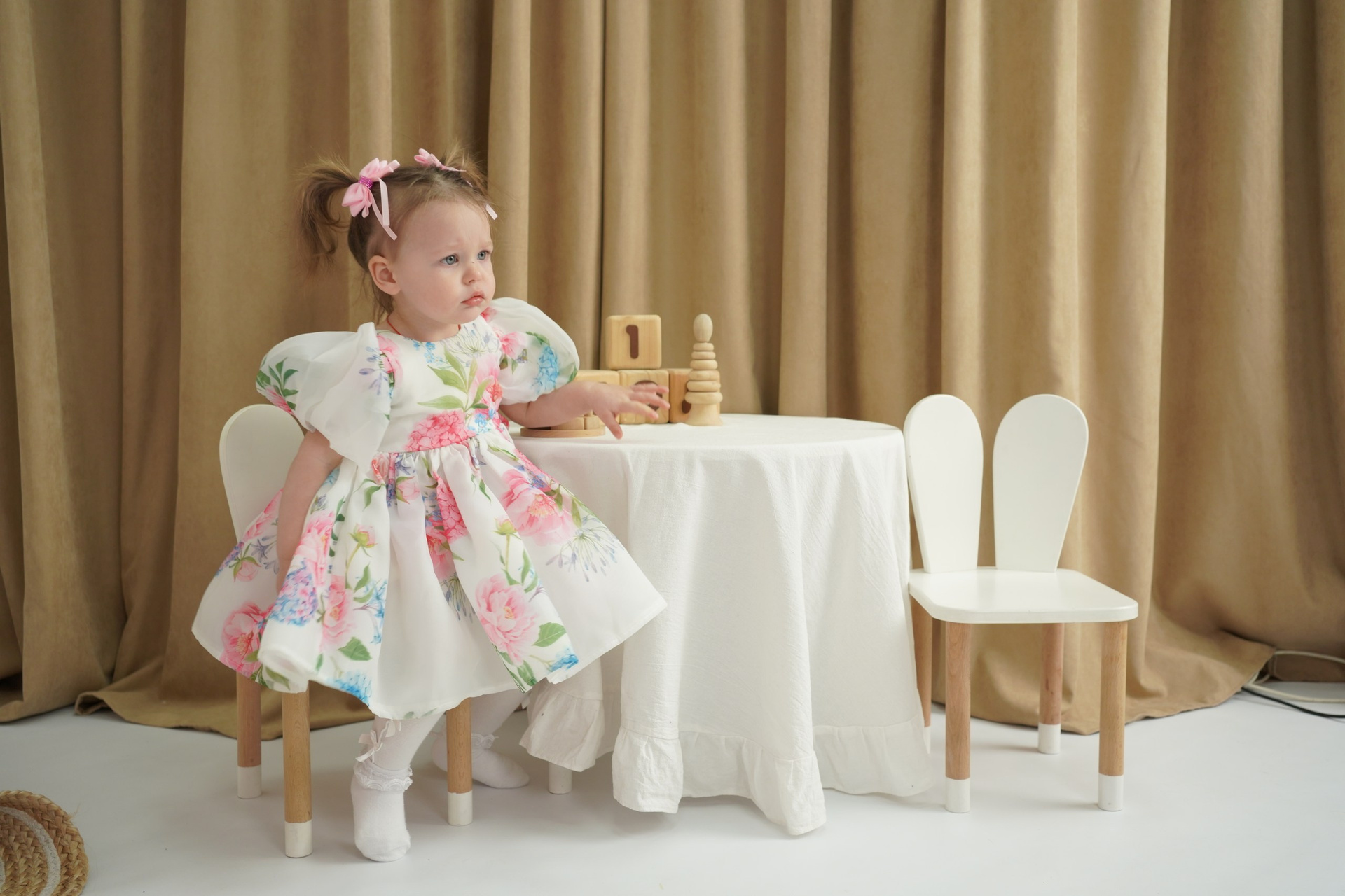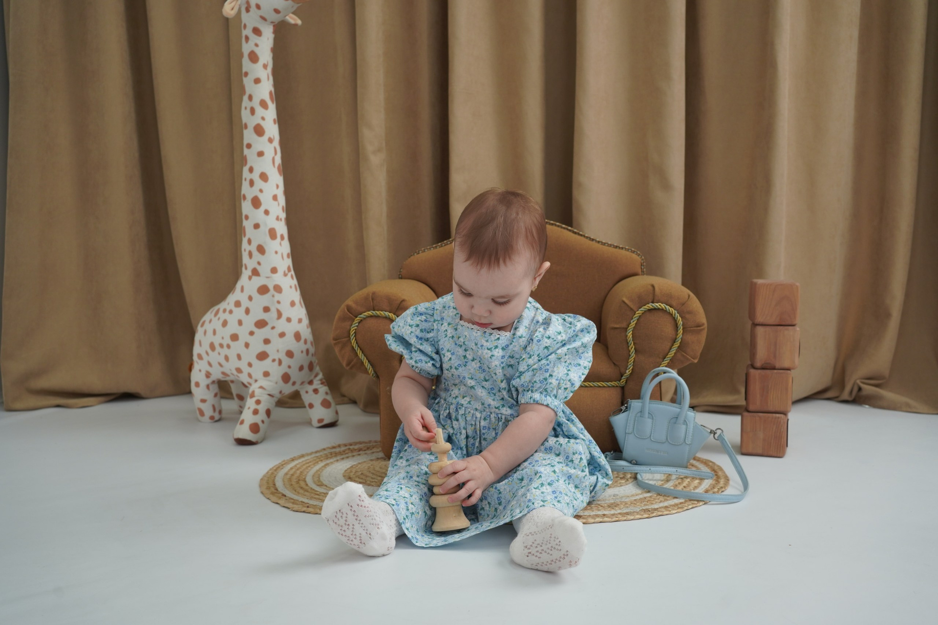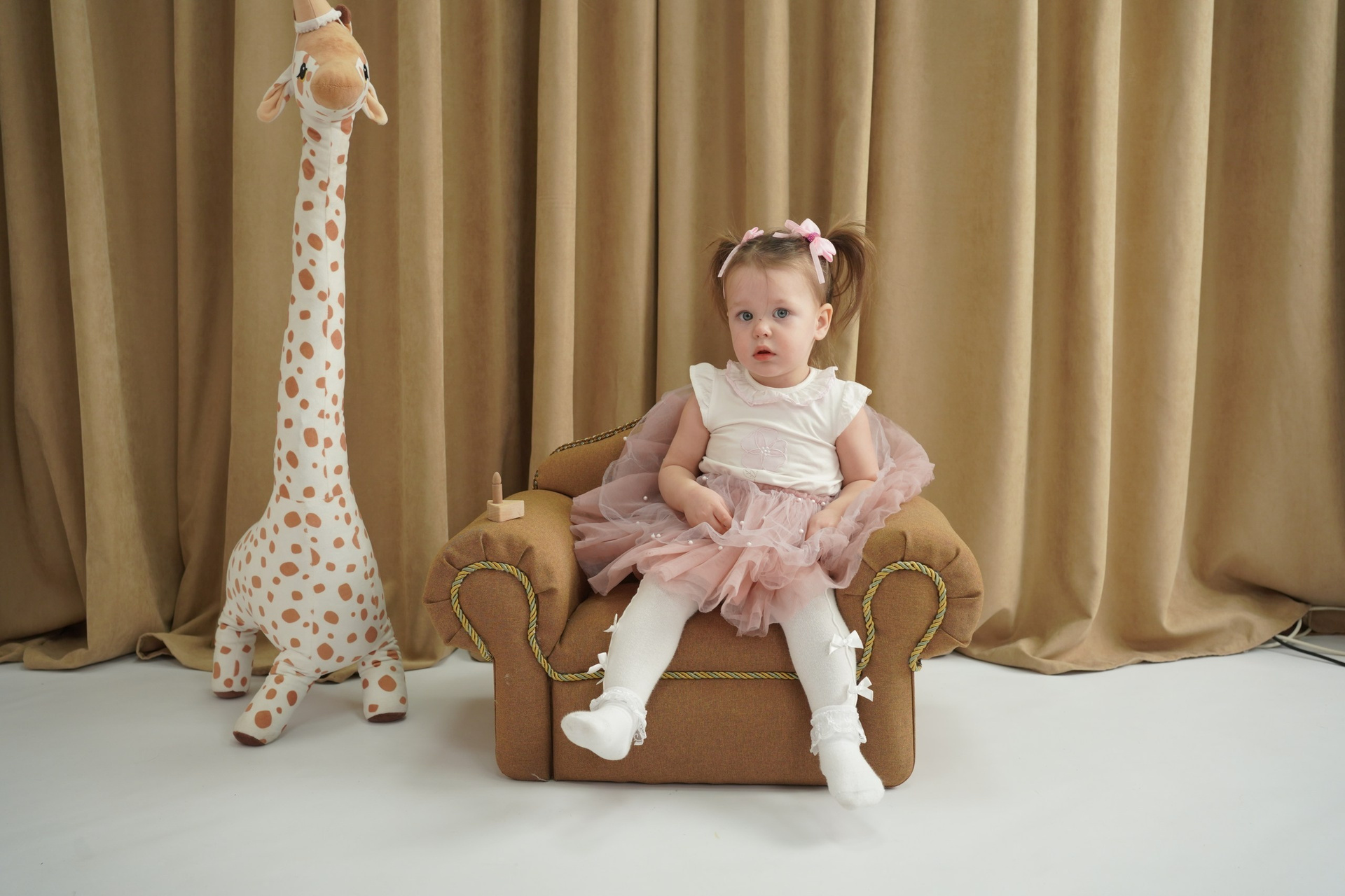 Весь наш реквизит создан с учетом размеров малышей, так что вы можете быть уверены, что ваша малышка будет комфортно себя чувствовать во время съемки. Кроме того, в нашей студии есть огромный гардероб очень красивых платьев и образов для девочек!